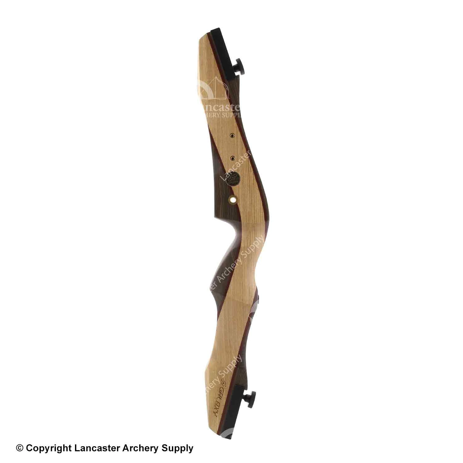 • Riser is cut past center with a crowned arrow shelf, brass plunger, stabilizer and sight/ quiver bushings